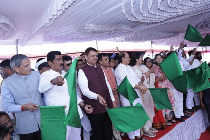 अमळनेर (भां) ते बीड नवीन रेल्वे मार्गाचे उद्घाटन आणि बीड ते अहिल्यानगर रेल्वेचा शुभारंभ मुख्यमंत्री देवेंद्र फडणवीस यांनी रेल्वेला हिरवा झेंडा दाखवून केला. यानिमित्ताने आयोजित कार्यक्रमात ते बोलत होते. यावेळी उपमुख्यमंत्री अजित पवार, पर्यावरण व वातावरणीय बदल, पशुसंवर्धन मंत्री श्रीमती पंकजा मुंडे, खासदार रजनी पाटील, खासदार बजरंग सोनवणे, आमदार सर्वश्री विक्रम काळे, धनंजय मुंडे, विजयसिंह पंडित, आमदार श्रीमती नमिता मुंदडा, विभागीय आयुक्त जितेंद्र पापळकर, जिल्हाधिकारी विवेक जॉन्सन, जिपचे मुख्य कार्यकारी अधिकारी जितीन रहमान, पोलीस अधिक्षक नवनीत काँवत, मध्य रेल्वे महाप्रबंधक धर्मवीर मीणा, विभागीय रेल्वे प्रबंधक राजेशकुमार वर्मा आदी उपस्थित होते.
